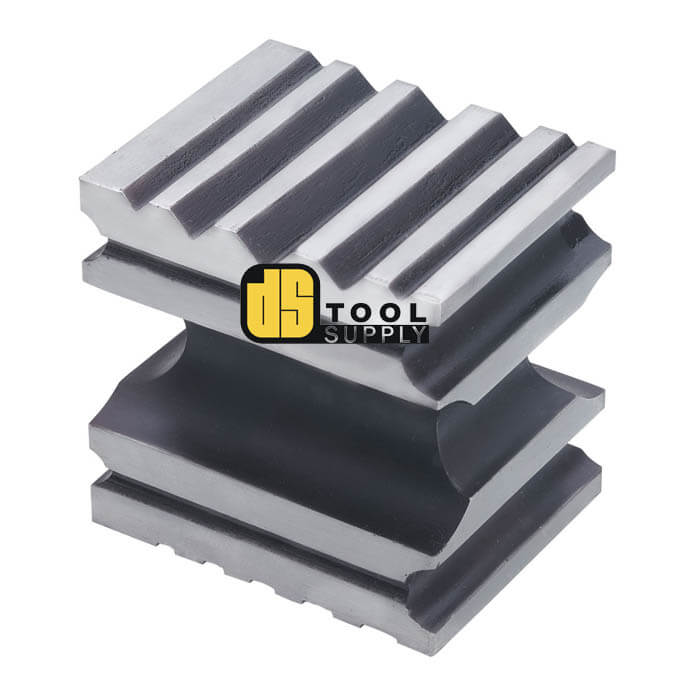 Swage block / steel grooving block. 10 x half-round grooves of 3mm – 25mm, Length: 2 x 60mm and 6 x 50mm. 7 x triangular grooves (V) of 3mm – 9mm, length: 2 x 60mm and 5 x 50mm. 5 x normal grooves 3.0mm – 7mm, length: 50mm.
