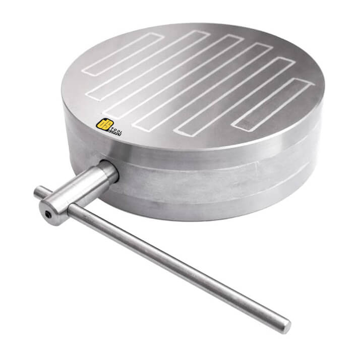 This magnetic chuck suitable for use in thin or medium grinding applications. The unit utilizes an earth magnetic circuit, and metal top plates.
