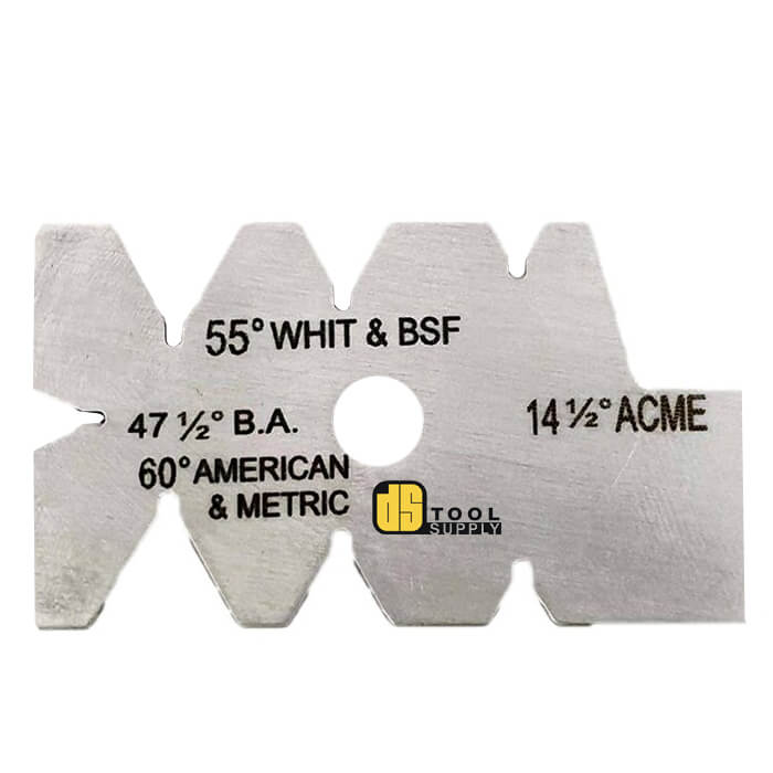 A Combined threading tool gauge for ACME 14-1/2 degree and angular threads 47-1/2 degree, 55 degree, 60 degree. Made from Stainless Steel Sheet. Sheet thickness is 1.2mm.