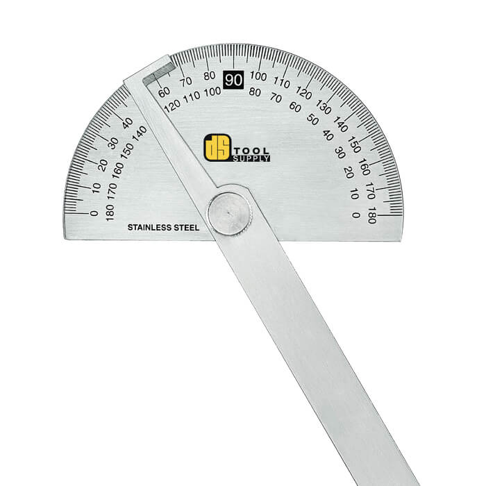 For Machinists, Draughtsmen, layout men & other mechanics. Protractor has easy etched reading graduations from 0 to 180 degree on opposite directions.
