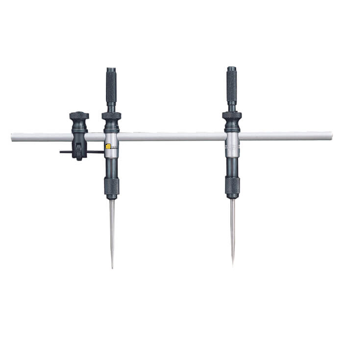 Used to measure the distance between points that are too great to be reached with dividers. The heads are die cast with black wrinkle finish and have hardened, forged steel divider points. The points screw into the heads, and the pencil  socket accompanying each set of trammel heads can be used in place of either point.