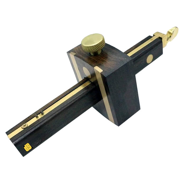 It is made of the wood high hardness and smooth surface. Dual adjustable hardened pins for marking both sides of a mortise and Single pin on reverse side for use as marking gauge. Brass thumbscrew locking mechanism is used for adjustment. This tool is ideal used for marking straightened lines on wood.